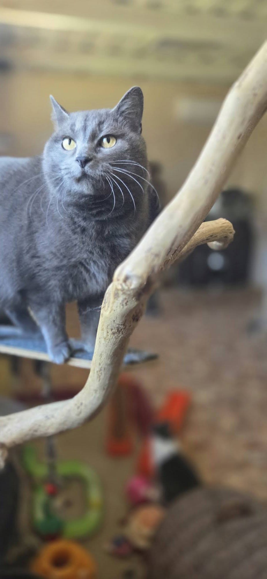 Mums nelabai išeina riboti, nes gyvena bendrame kambaryje su kitais katinais. Namai būtų geriausias variantas svorio kontrolei.