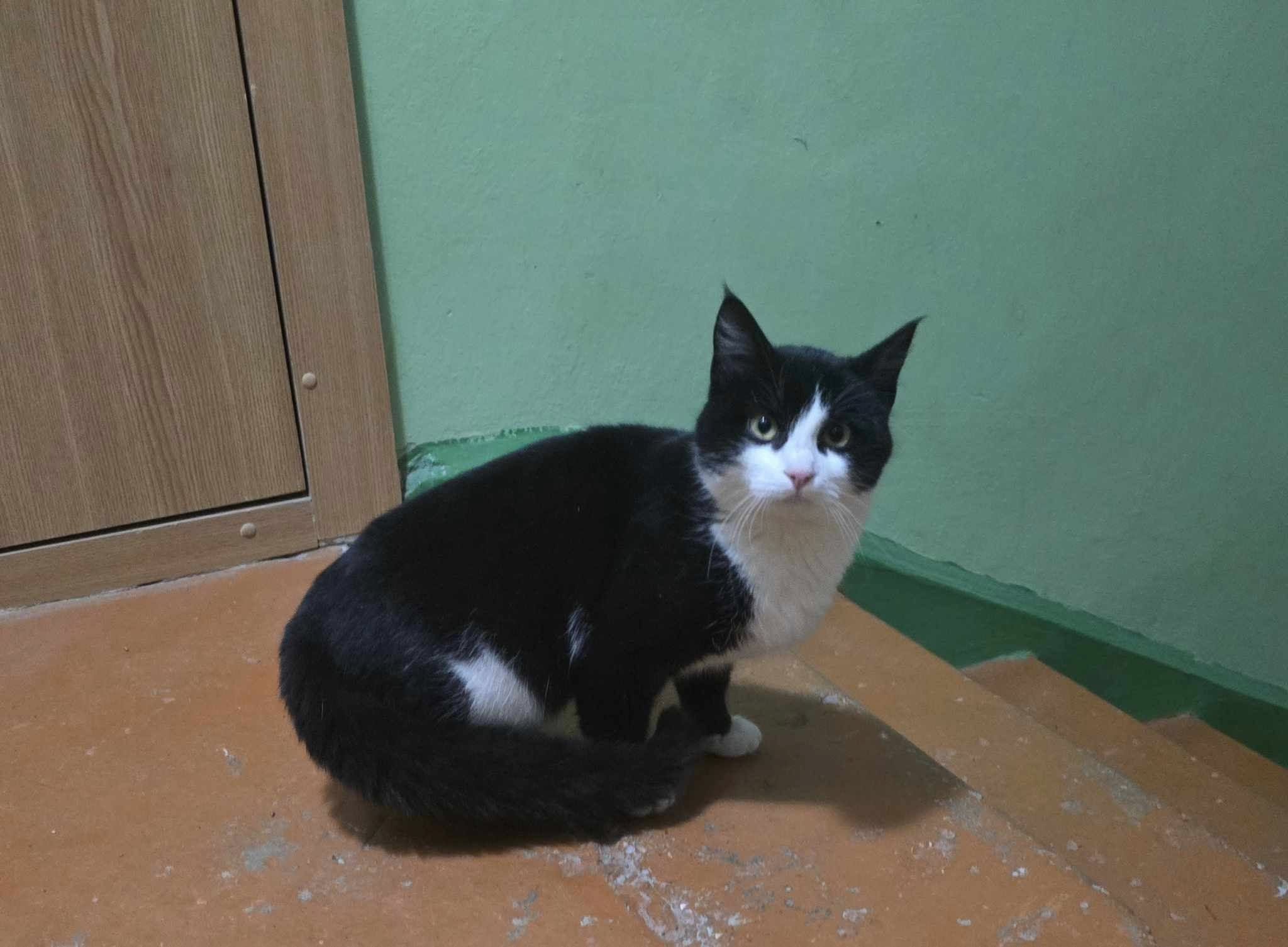 „Sveiki. Plungėje, mūsų name V. Mačernio 33, 3-čia laiptinė. Turim atklydusi katinėlį. Nuo šeštadienio aš ją radau savo 5 aukšte. Išklausinėjau kaimynus, dar laiptinėj parašiau skelbimą, bet niekas neatsiranda.