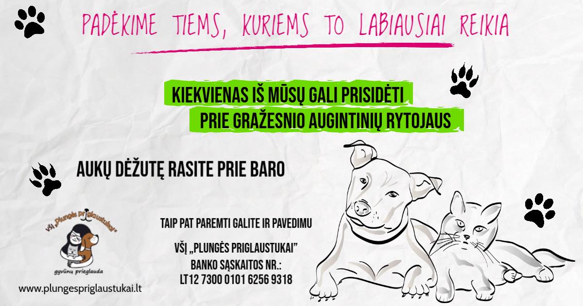 Kiekvienas mažas gerumo gestas gali pakeisti beglobio gyvūno gyvenimą. Šiandien turime galimybę prisidėti prie gražesnio rytojaus keturkojams draugams iš Plungės Priglaustukai